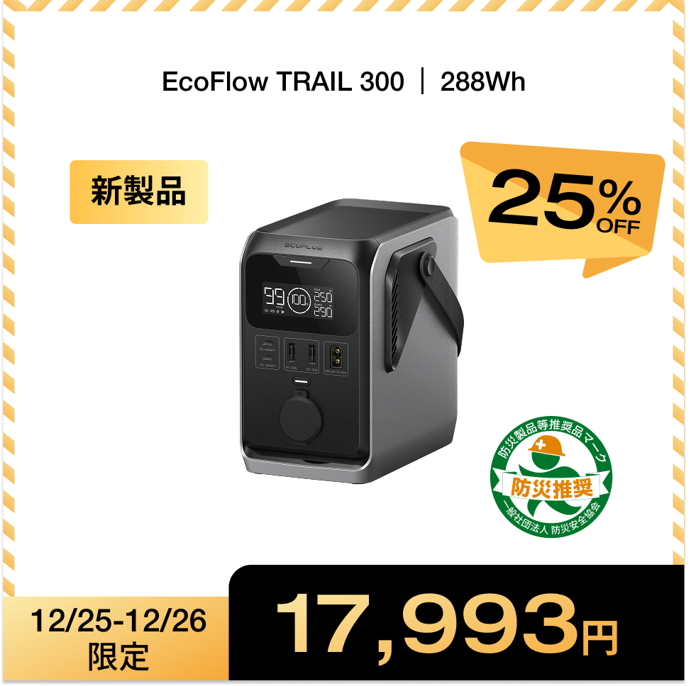 ポータブル電源 リン酸鉄 Trail 300 288Wh 蓄電池 バッテリー充電器 キャンプ アウトドア 車中泊 持ち歩き 軽量 EcoFlow エコフロー