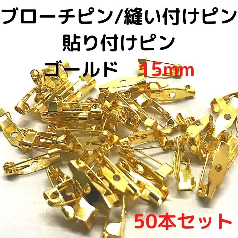 ブローチピン 金具 ブローチピン15mm コサージュピン ブローチ手作り ゴールド50本セット B15G50(1穴)