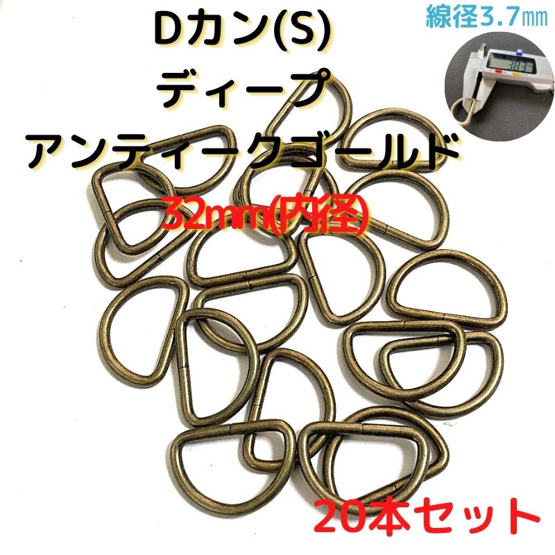 Dカン(S) 32mm Dカン 金具 ディープアンティークゴールド 20本セットDKS32D20