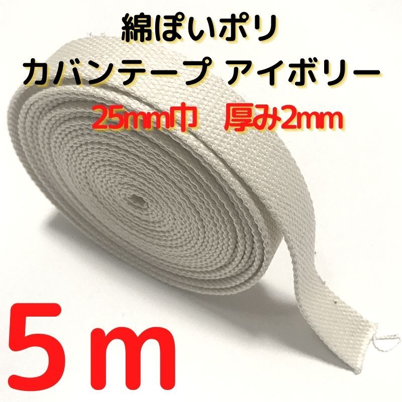 カバンテープ25mmアイボリー5M綿ぽいポリアクリルテープ風平織 アクリルテープ 25mm 持ち手テープ 手芸KT25I5
