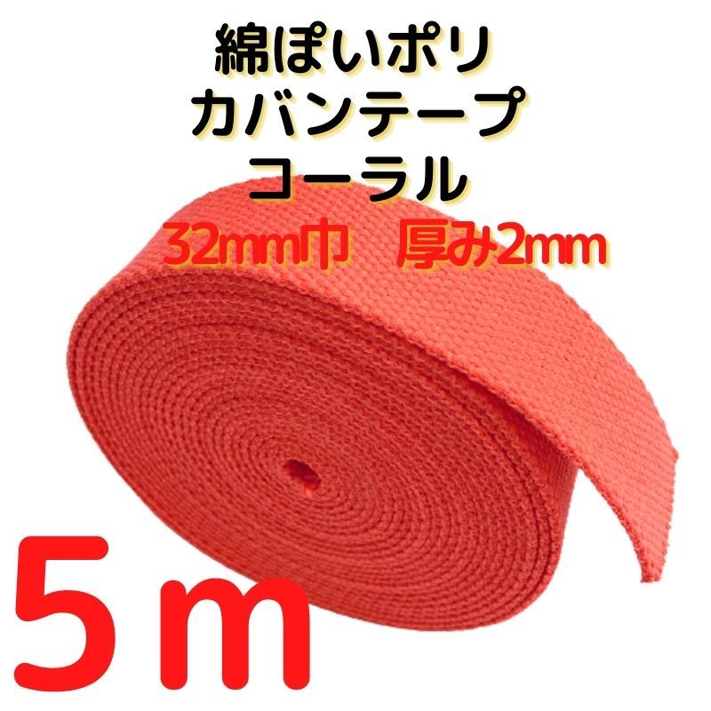カバンテープ32mmコーラル5M綿ぽいアクリルテープ風KT32CP5