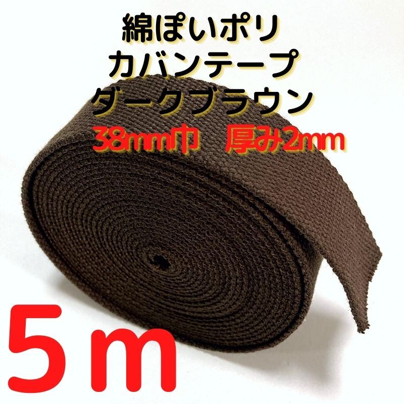 カバンテープ38mmダークブラウン5M綿ぽいアクリルテープ風KT38DBR5