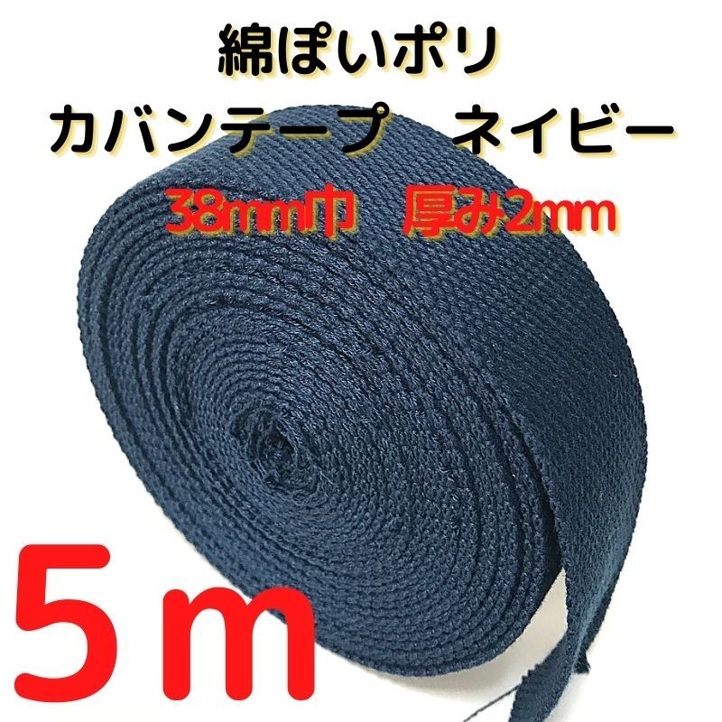 カバンテープ38mmネイビー5M綿ぽいポリアクリルテープ風平織 アクリルテープ 38mm 持ち手テープ 手芸KT38N5