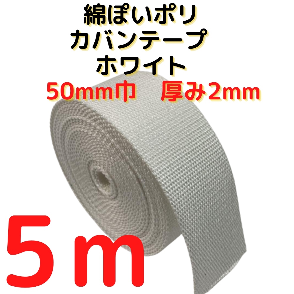 カバンテープ50mm ホワイト 5M綿ぽいポリアクリルテープ風平織 アクリルテープ 50mm 持ち手テープ 手芸KT50W5