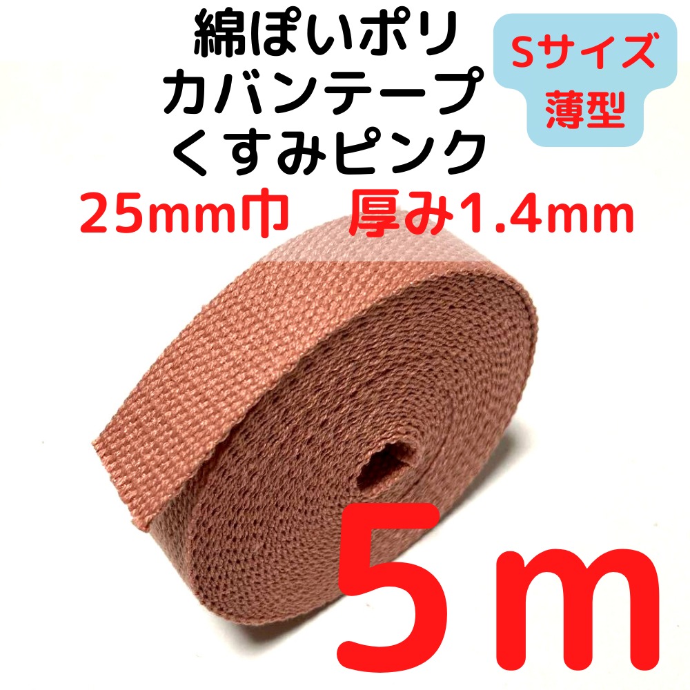 カバンテープ25mm(S)薄手 1.4mm厚 くすみピンク5M綿ぽいアクリルテープ風 KTS25P5