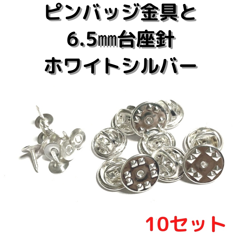 ピンバッジ 留め具 ピンバッジ おしゃれ 手作り ピンバッジ オリジナル ピンバッジ金具と6.5mm台針10セットP06W10ホワイトシルバー留め具 止め具 金属 種類