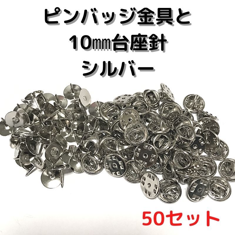 ピンバッジ 留め具 ピンバッジ おしゃれ 手作り ピンバッジ オリジナル ピンバッジ金具と10mm台針50セットP10S50シルバー留め具 止め具 金属 種類