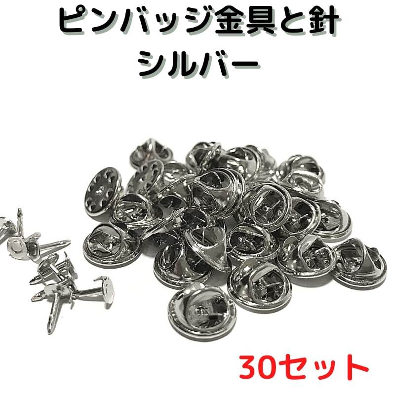 ピンバッジ 留め具 ピンバッジ おしゃれ 手作り ピンバッジ オリジナル ピンバッジ金具と針シルバー30セットNo.P30Sバタフライクラッチ 止め具 金属 種類