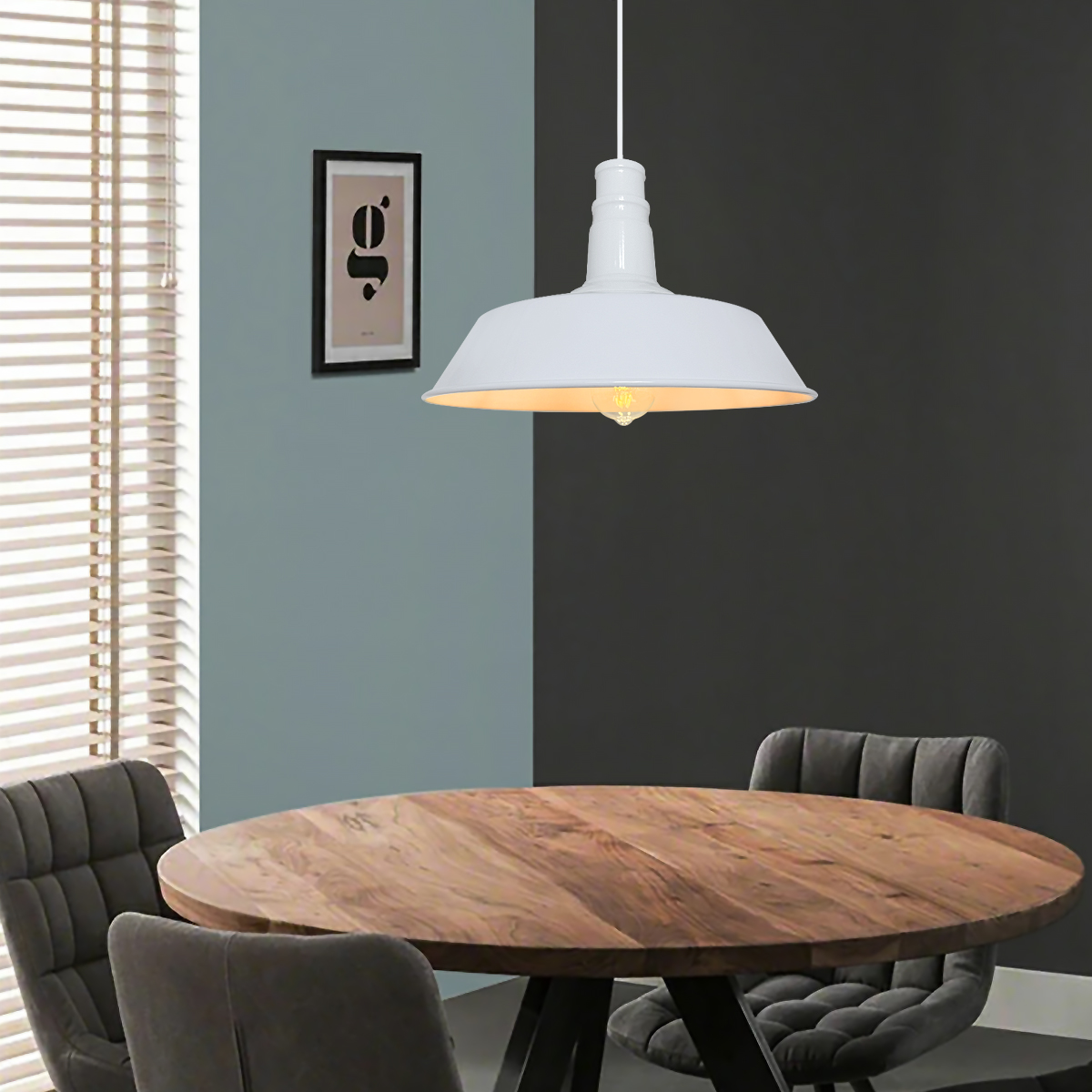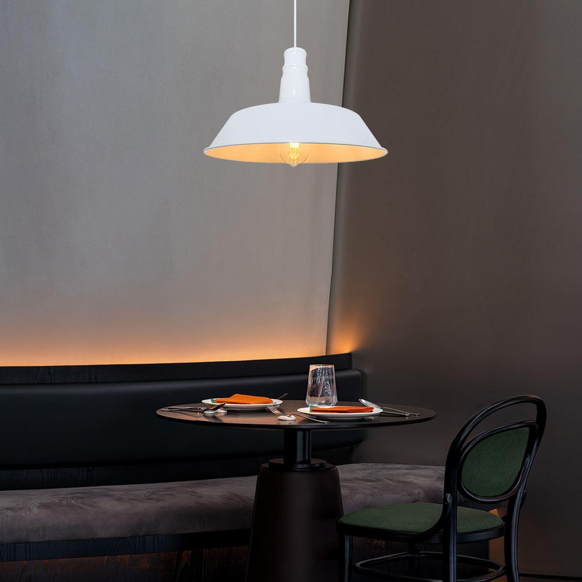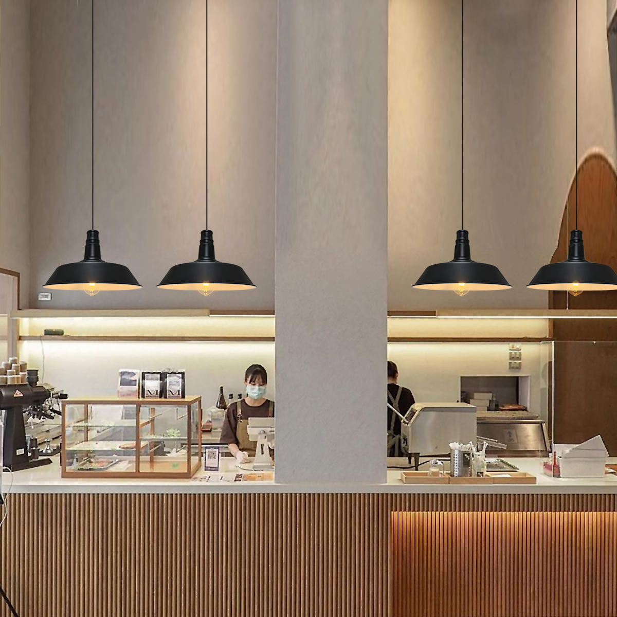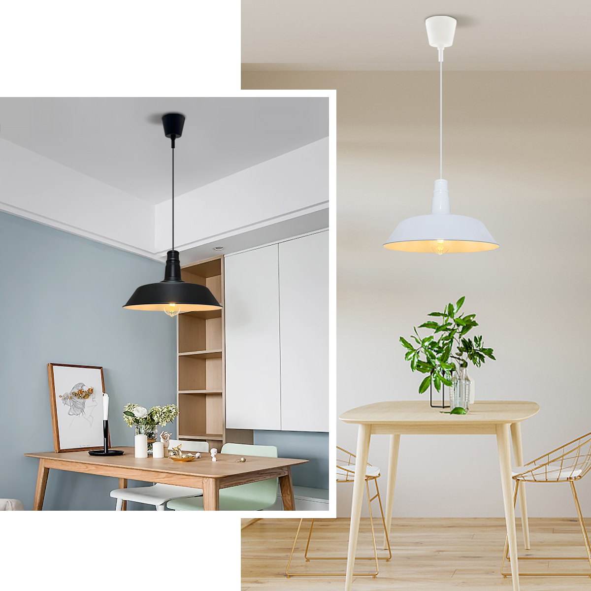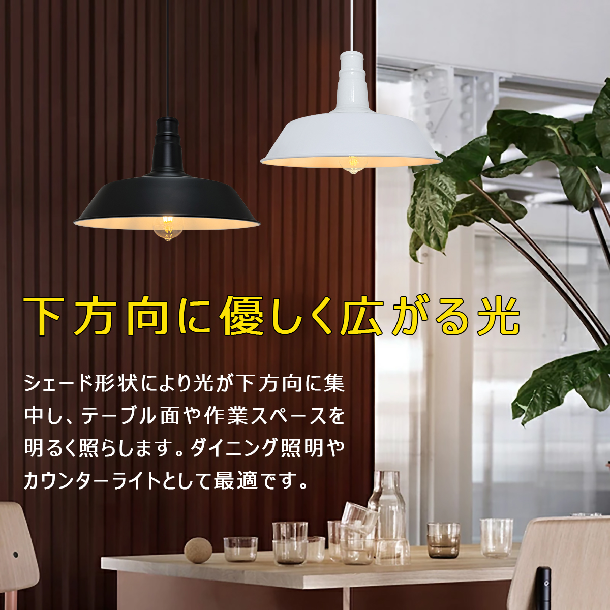 ● シェード形状により光が下方向に集中し、テーブル面や作業スペースを明るく照らします。ダイニング照明やカウンターライトとして最適です。