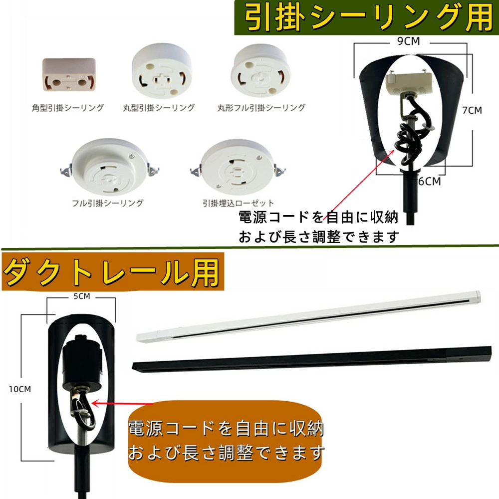コード調節カバーサイズ:外径5cm×高さ10cm(配線ダクトレール用)/外径9cm×高さ7cm(引掛けシーリング用)