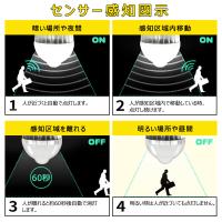 ● 光・人感センサー機能付き、自動で点灯・消灯を実現できます。明るい場所では人が近づいても点灯しない、暗くなれば、自動的点灯するようになる仕様です、節電しながら便利になります。