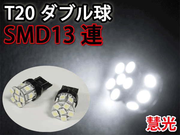 LEDバルブ T20 ダブル球 無極性 39発LED相当 SMD13連 白 2個 慧光16-5