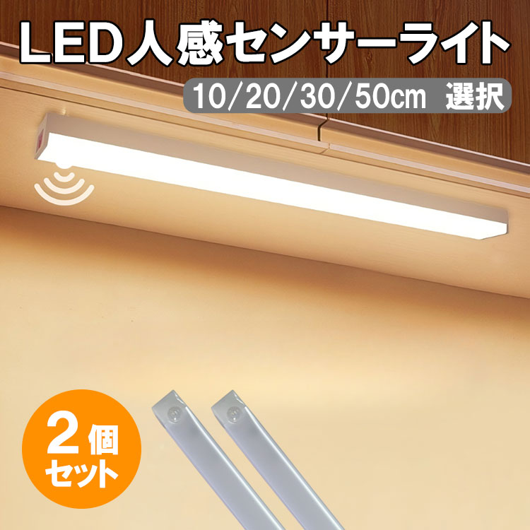 センサーライト led 人感ライト 2本セット 長さ選択 調光 USB充電式 バーライト フットライト 足元灯 クローゼットライト 防災 非常灯 66-X
