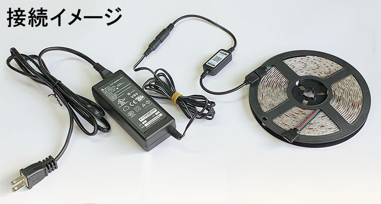 [1]12V電源アダプタとRGBテープ間に接続する。