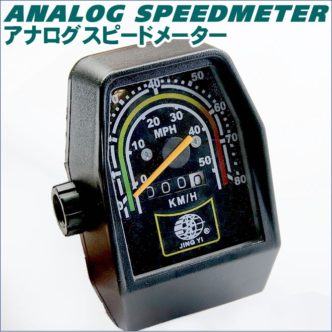 自転車用アナログ式スピードメーター。トリップメーター機能付き。左側のダイヤルを回すことで距離が0になります。