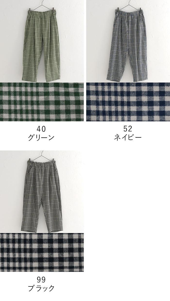 テーパードパンツ レディース チェック ゆったり 綿ビエラ D*g*y 綿100%/ カジュアル ナチュラル 体型カバー ウエストゴム ボトムス 大人可愛い エコロコ sel, Ms, Ls, LL, 3L, 30代 40代 50代/ 秋冬 大きいサイズ グリーン 緑 ネイビー 紺 ブラック 黒