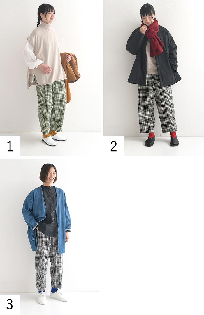 柔らかな起毛コットン生地のゆったり穿けるパンツ