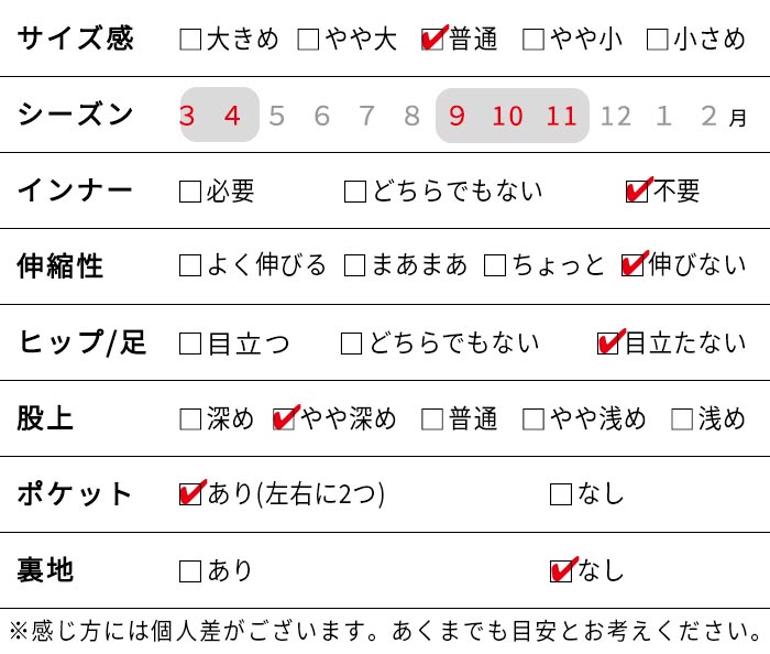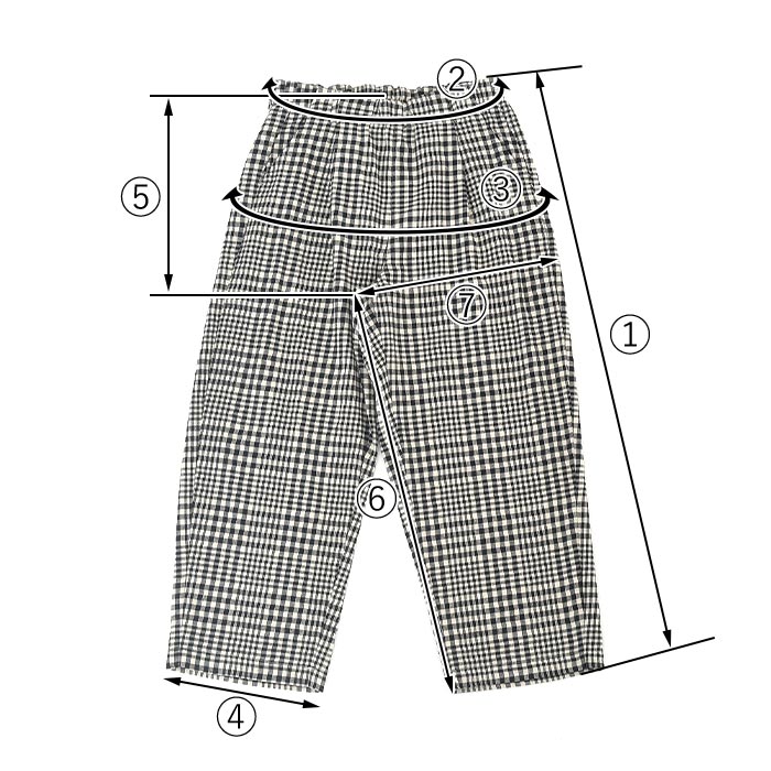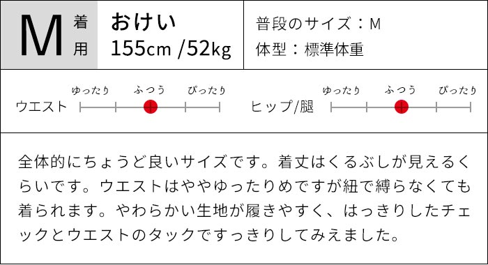 ※ウエストは「自然に置いた状態(最小)〜伸ばした状態(最大)」の寸法です。