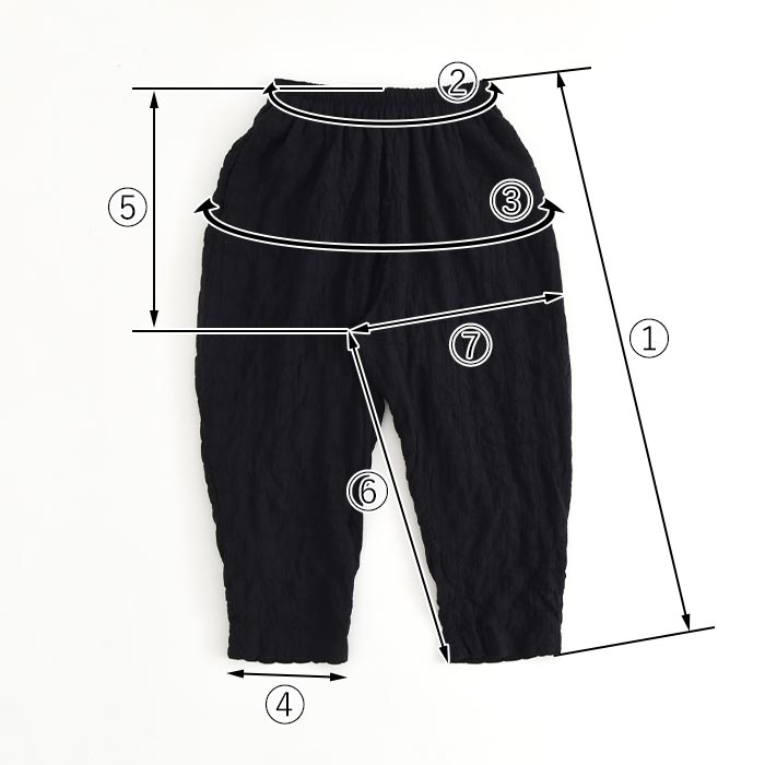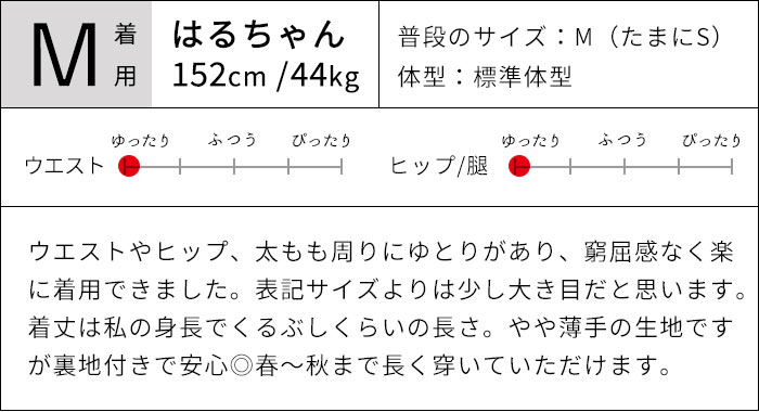 ※ウエストは「自然に置いた状態(最小)〜伸ばした状態(最大)」の寸法です。