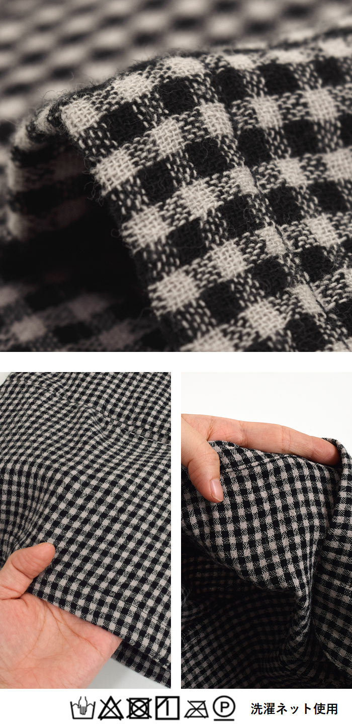 | カラー | 21:ブラック | やや褪せ感のある黒 15:ダークネイビー | 深い色味のダークネイビー 17:杢グレー | やや薄めの杢グレー 01:オフホワイト | わずかに黄みがある柔らかい白 161:モーブ | グレー混じりのやや淡いトーンの紫 87:モスグリーン | やや青みのあるくすんだ淡い緑 B07:ブロックチェック | 黒と少し黄みのある白のチェック柄(裏は同色の大チェック柄) G07:ギンガムチェック(黒ベージュ) | 黒と赤みのあるベージュのチェック(裏も同柄) D16:ドット | ややくすんだベージュに黒のドット(裏は黒無地) SQ21:四角(ブラック) | 黒地にややくすんだベージュの四角柄(裏は表と色が逆) 52:ブルー | 鮮やかさを抑えた、くすんだ青 S02:オフストライプ | わずかに黄みがある白地に黒のストライプ(裏は白無地) 78:パープル | グレイッシュで赤みが少ない紫 S17:グレーストライプ | やや赤みがあるグレー地に黒のストライプ(裏はグレー無地) ()の記載がないものは、表と裏は同色です。 |