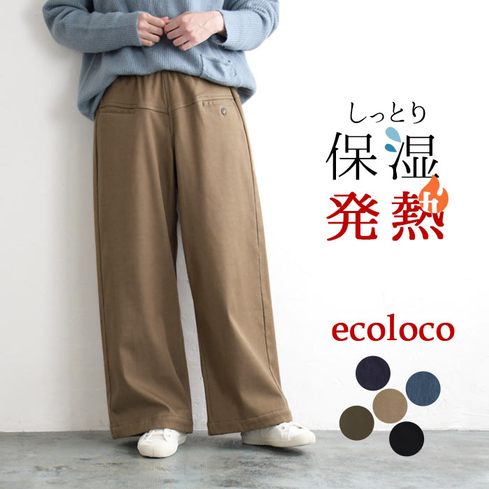 あったか保湿デニム ワイドパンツ 腰切替すっきりワイドパンツ 暖かい ヒート 保温効果 裏ベロア 無地 ゆったり 大きいサイズ ボトムス e+ M L LL 3L earth_eco_loco, 秋冬 オリジナル エコロコ ナチュラル ゆったり 体型カバー 40代 50代 60代 おしゃれ デニム ダークベージュ カーキ