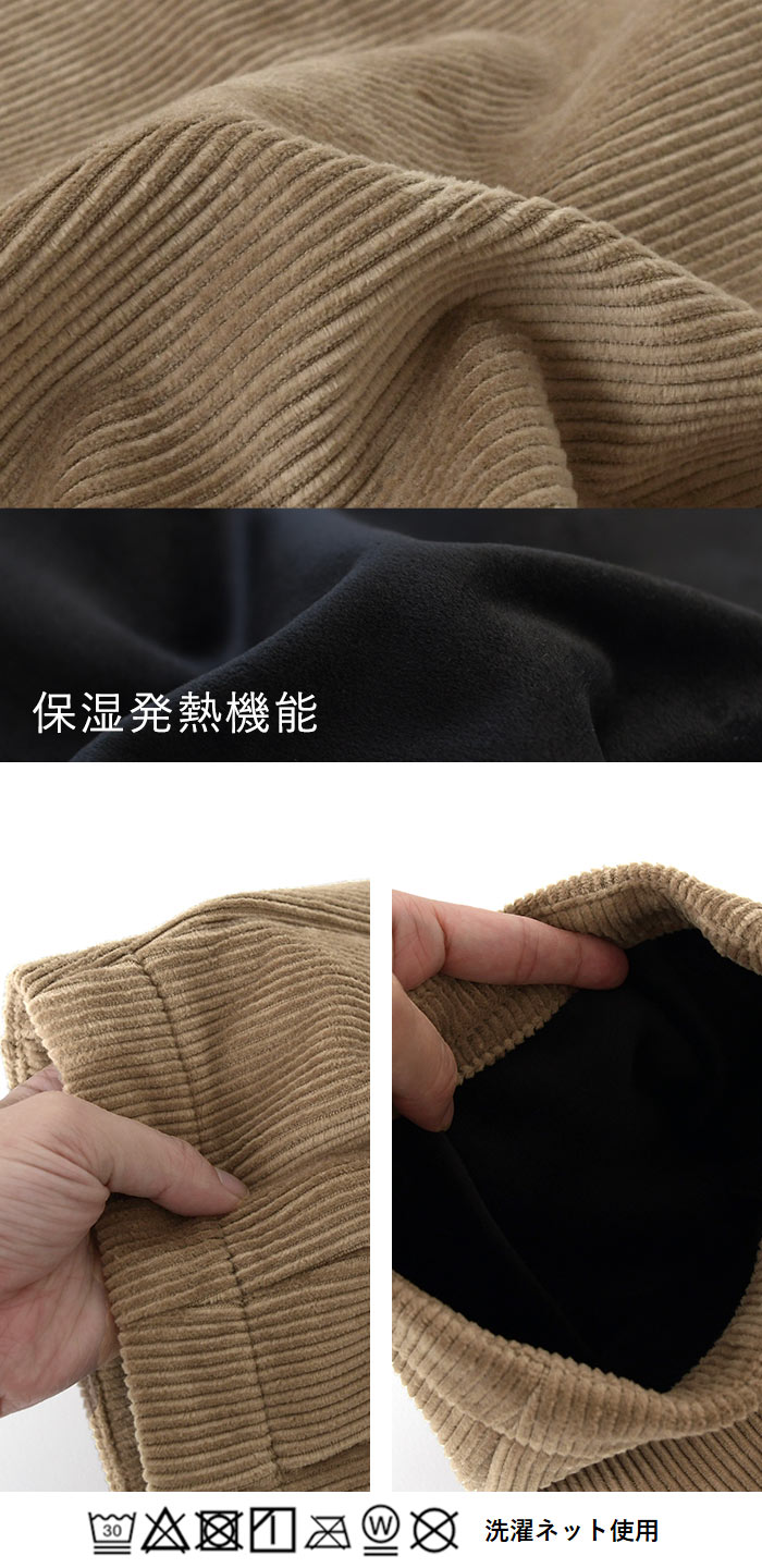 太畝の柔らかなコーデュロイ、裏は暖かなベロア