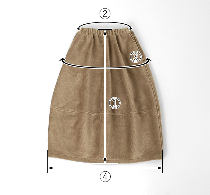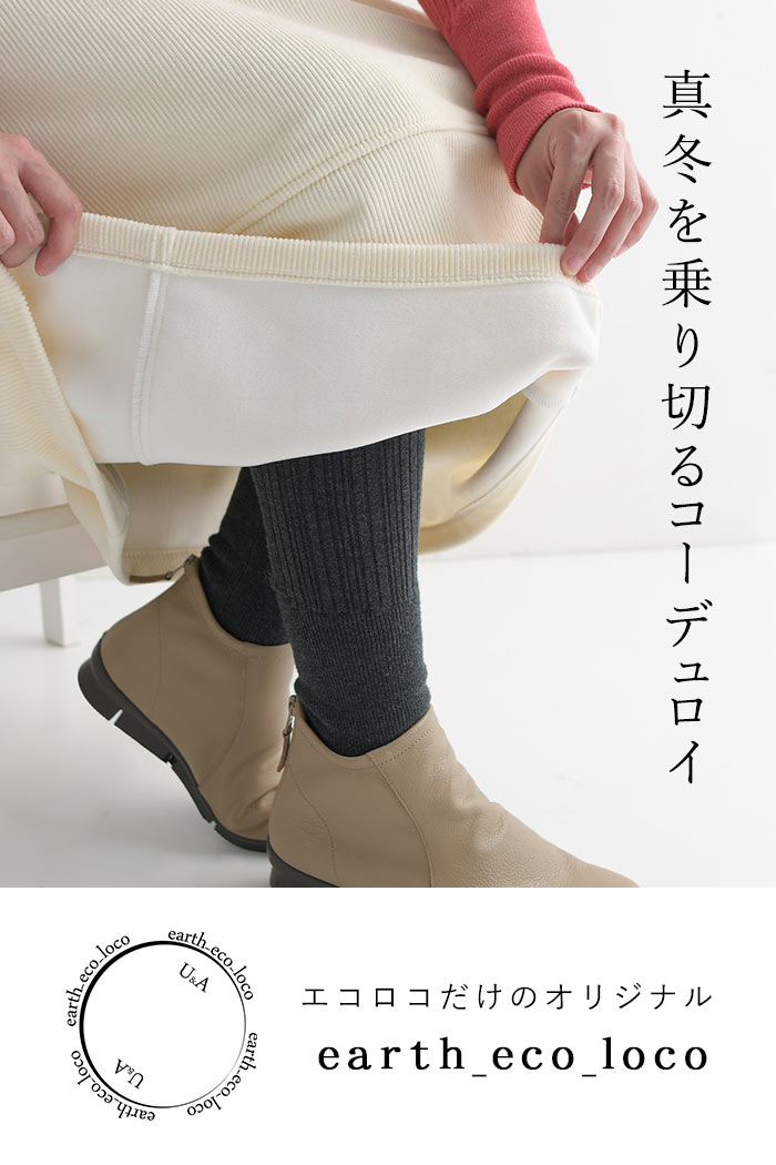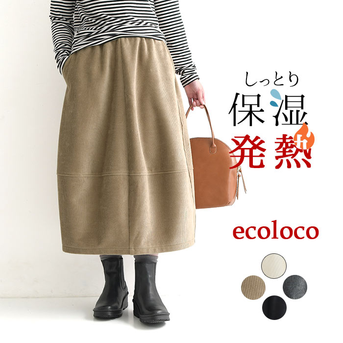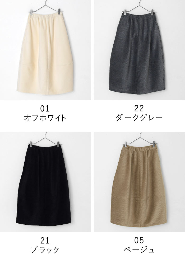 オリジナル 保湿発熱 裏ベロア コーデュロイ バルーンスカート 綿 コットン M〜3L/カジュアル ナチュラル あったか 暖かい 防寒 大人可愛い レディース エコロコ e+, Ms,Ls,LL,3L/秋 冬 大きいサイズ 30代 40代 50代 オフホワイト ダークグレー ブラック ベージュ 灰色 白 黒