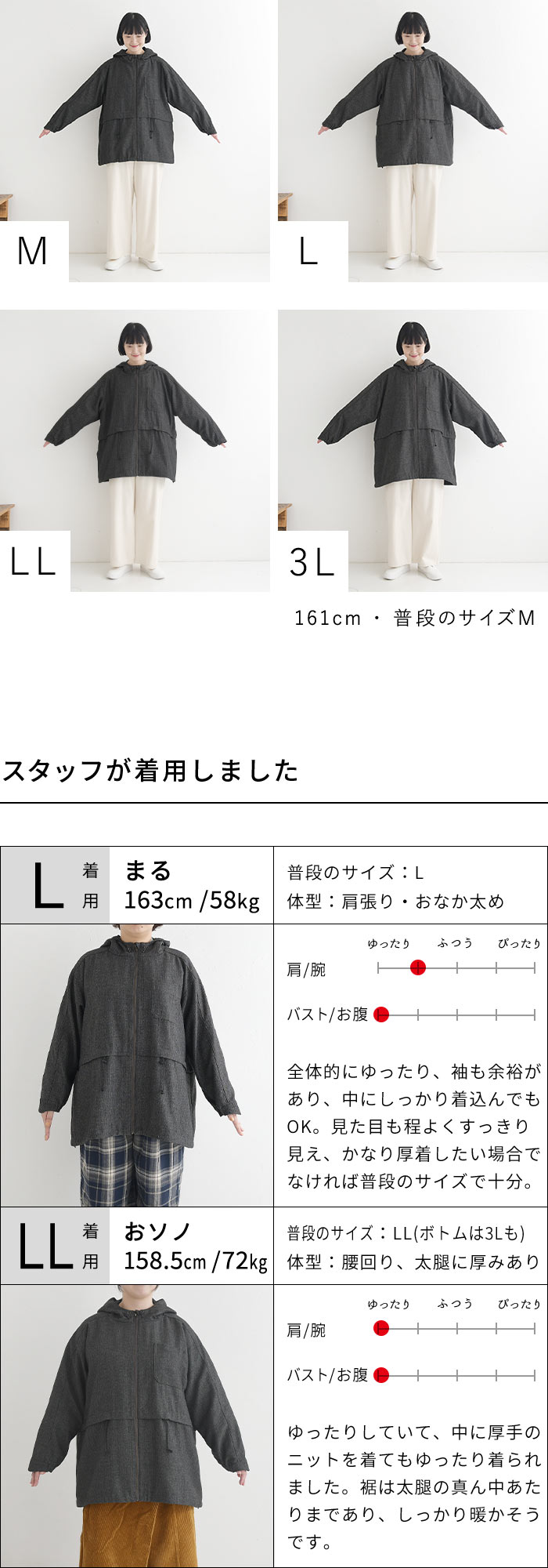 | サイズ | M | L | LL | 3L |