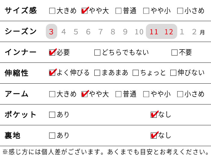| ④肩幅 | 62 | 65 | 68 |