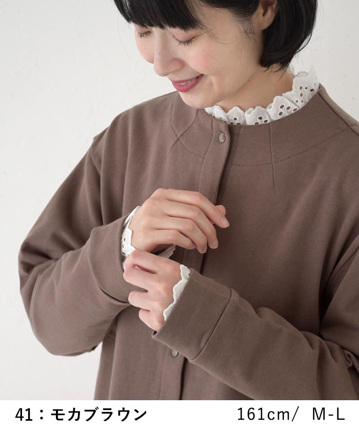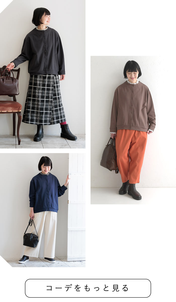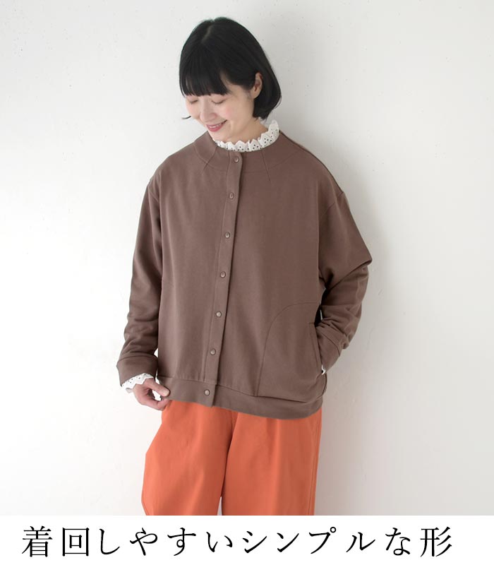柔らかな肌触り、コットン裏毛カーディガン