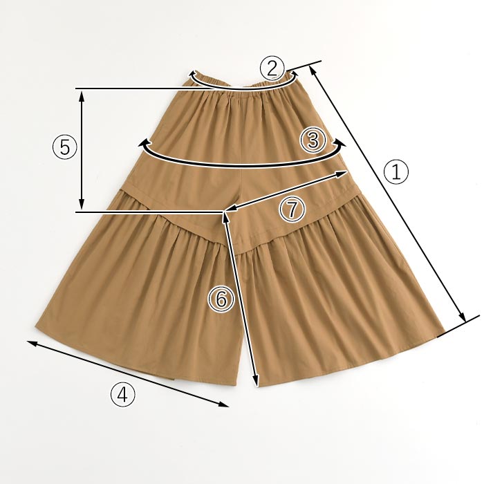※ウエストは「自然に置いた状態(最小)〜伸ばした状態(最大)」の寸法です。