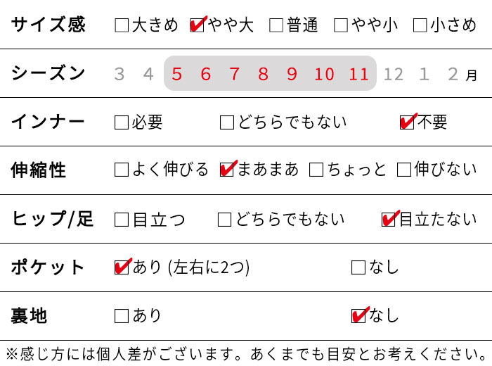 | 素材 | 綿98%/ポリウレタン2% |