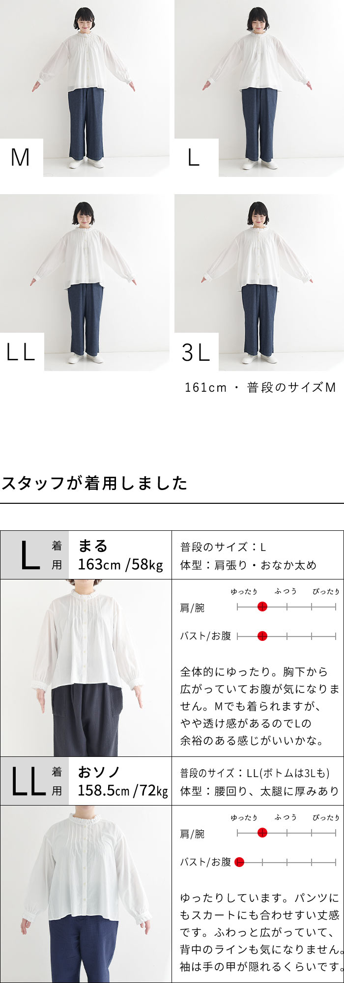 | サイズ | M | L | LL | 3L |