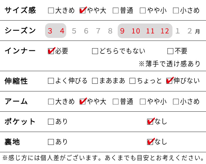 | ④肩幅 | 55 | 56 | 57 | 58 |
