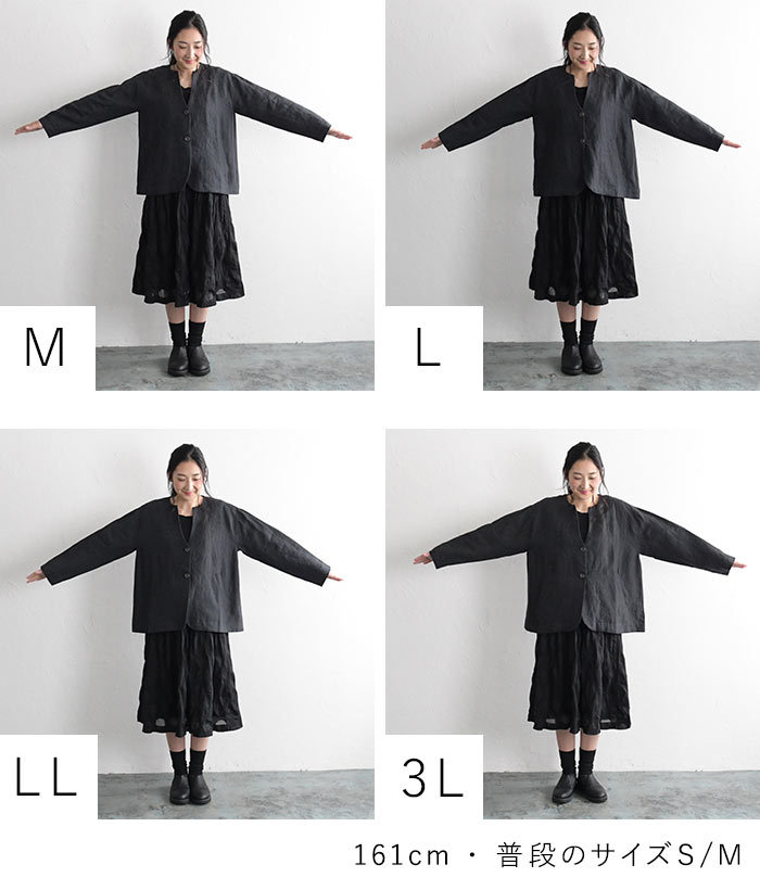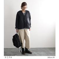 サイズ選びのアドバイス 肩落ちで、ややゆとりを持たせたかたち。普段のサイズで、窮屈感なく着られると思います。サイズ選びは、脇幅を特にチェック。薄手のインナーの上に、すっきりと着たい方はサイズ表を確認の上、サイズダウンしても。(伸縮性がない生地なので、脇幅、裄丈、バストは特にチェックしてください)スタッフ着用画像も合わせてご検討ください。 |