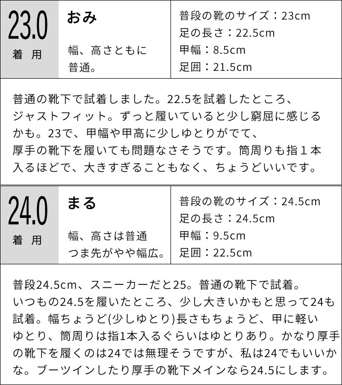 | サイズ | 22.5 | 23.0 | 23.5 |
