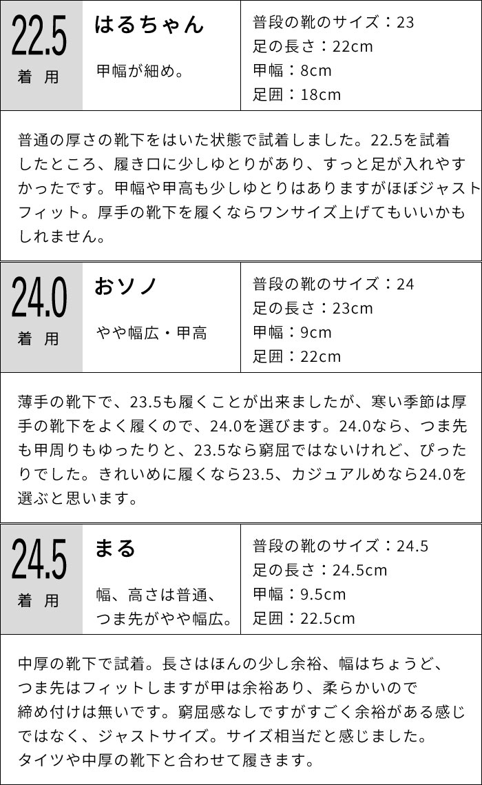 | サイズ | 22.5 | 23.0 | 23.5 |