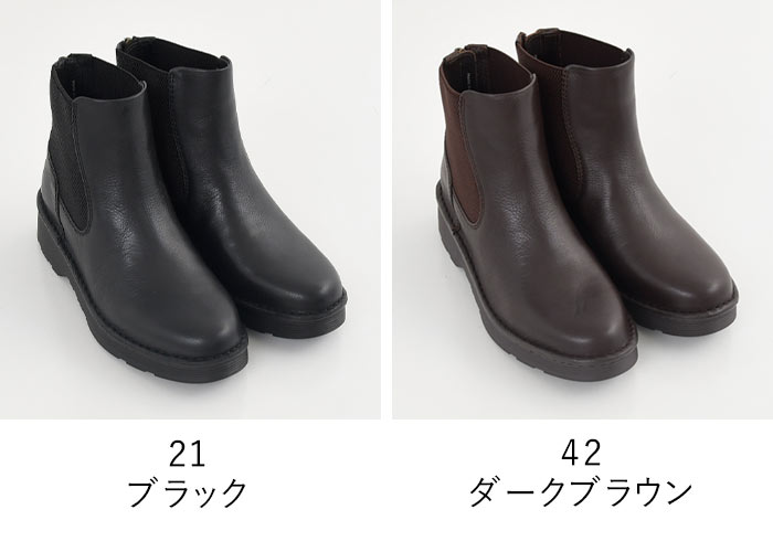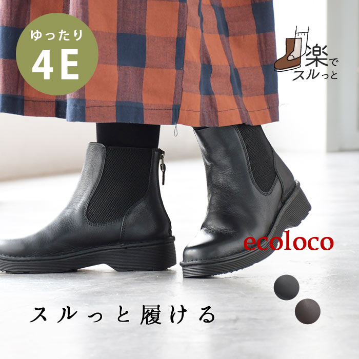 4E 本革 サイドゴアブーツ 幅広 ゆったり 歩きやすい 履きやすい レディース 厚底/ カジュアル ナチュラル ミドル丈 靴 シューズ 大人可愛い エコロコ e+, Ms, Ls, LL, 30代 40代 50代/ 春夏 秋冬 大きいサイズ ブラック 黒 ダークブラウン 茶色