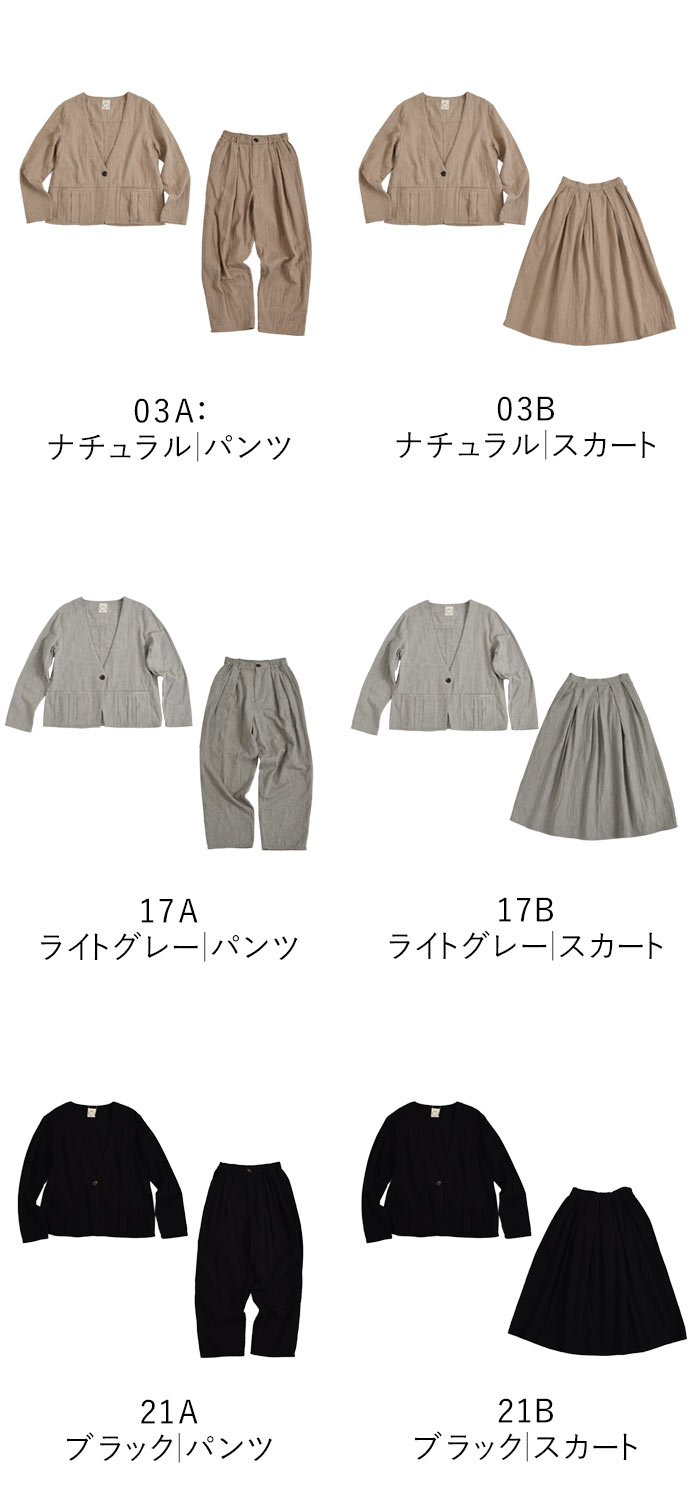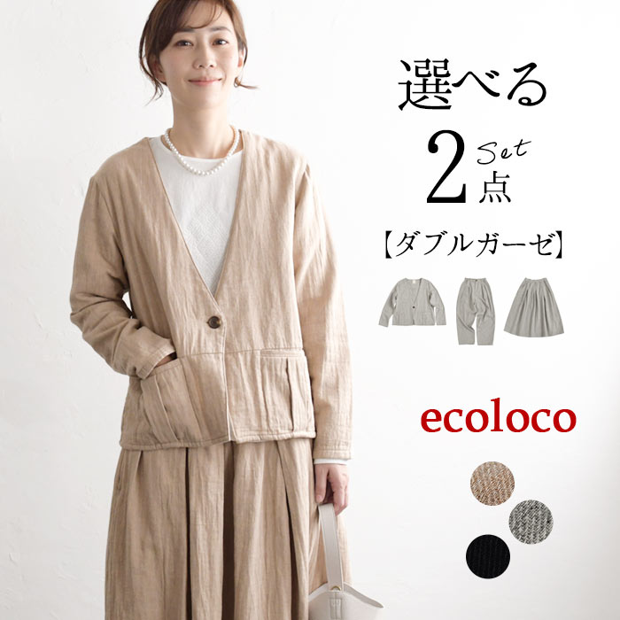 ダブルガーゼ セットアップスーツ ノーカラージャケット パンツ スカート/カジュアル ナチュラル お出かけ 入学式 卒業式 長袖 トップス 体型カバー レディース エコロコ e+, Ms,Ls,LL,3L/春 秋 冬 大きいサイズ 30代 40代 50代 ママスーツ