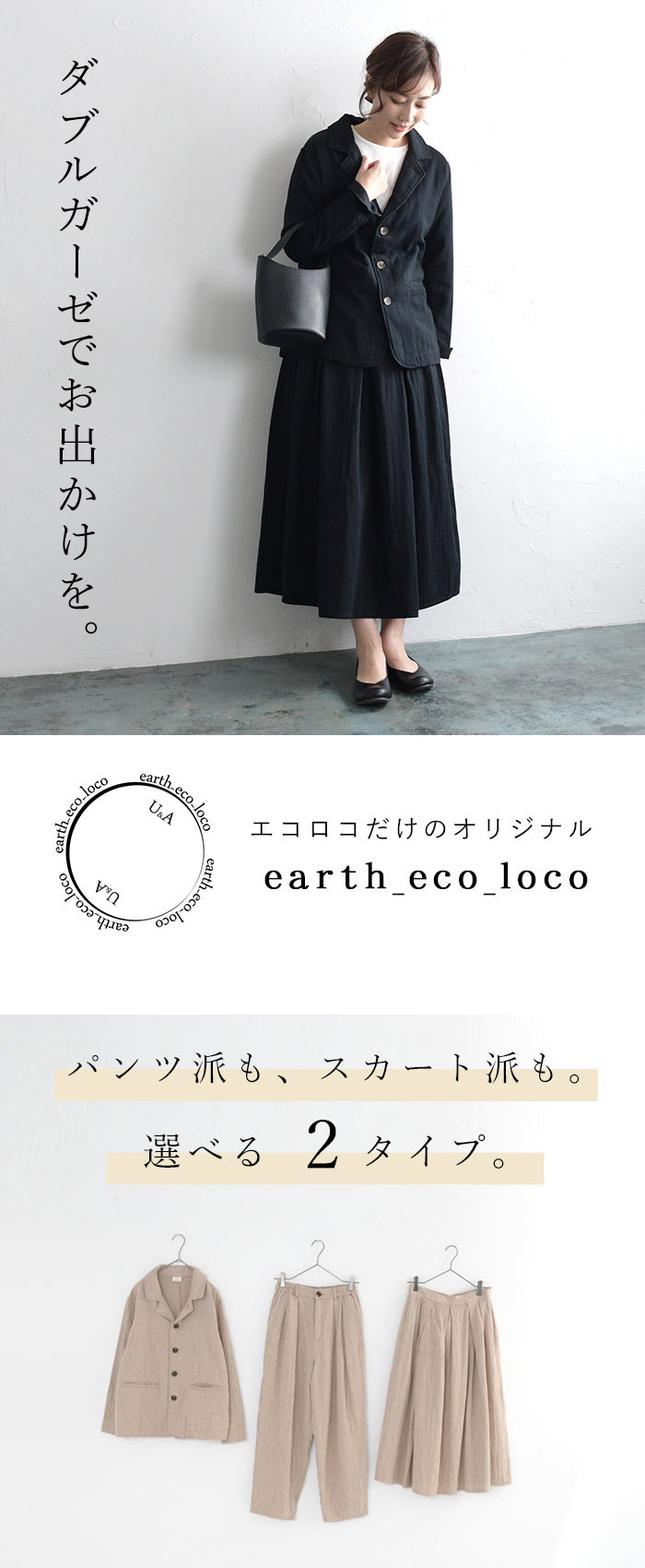 ecolocoのオリジナル earth_eco_loco 「長い間着られる」「着心地がいい」「着回しができる」がキーワード。天然素材を中心に、6つのシリーズで展開しています。 | ||