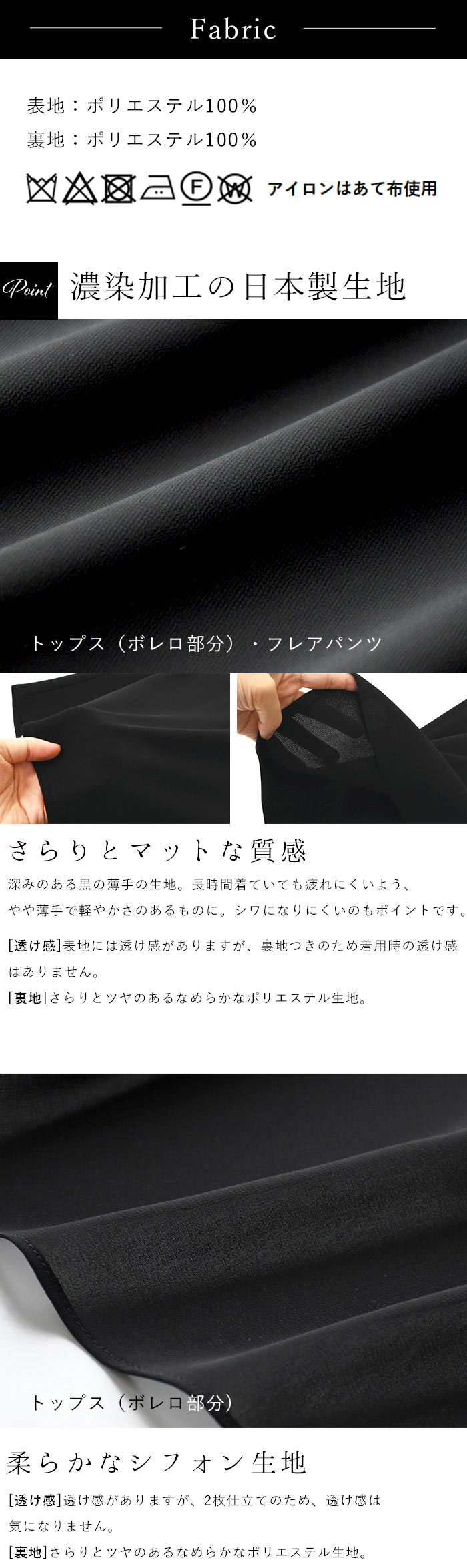 慶弔両用 喪服 ブラックフォーマル レディース セットアップ ボレロ ブラウス パンツ ゆったり 楽ちん 大きいサイズ 冠婚葬祭 ウエストゴム 礼服 葬式 スーツ エコロコe+, 春夏 秋冬 オールシーズン 26SS0204R,