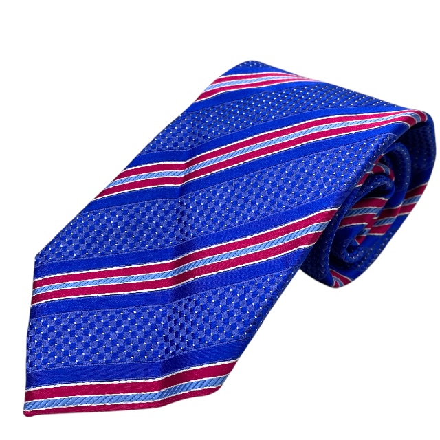 【未使用】Canali カナーリ ネクタイ ループタイ アクセサリー 小物 総柄 ストライプ ロゴ シルク ブルー レッド