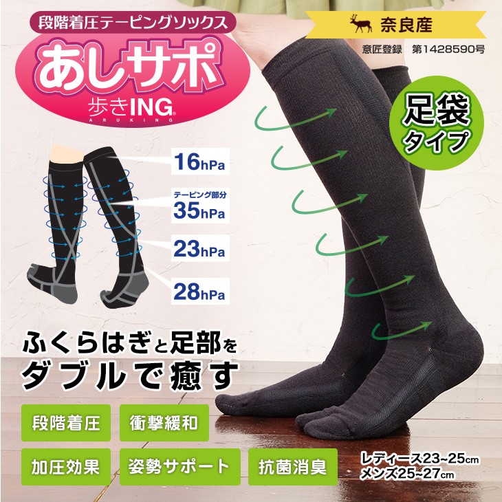 靴下 お悩み対策 あしサポ 段階着圧テーピングソックス タビ テーピング編み ウォーキング 立ち仕事 スポーツ 加圧効果 日本製 西垣靴下 リカバリー