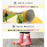つま先とかかとにアクセントカラーを入れた配色がかわいい靴下!クロステーピングや編み込みグリップ、ヒールロックなどの機能は今までのバリエシリーズのままに、目立たないような工夫をしています。夏は涼しく冬はあたたかな中空繊維を使用しているので、足首部分が柔らか。クシュっとして履いてもよし!バリエクロスよりはテーピングが緩めなので、初めての方はこちらを試すのも◎!