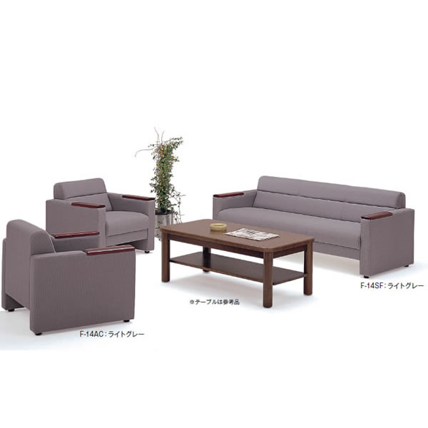 応接セット F-14 3点セット(ソファ×1、アームチェア×2) 布張り(ライトグレー) F-14SET