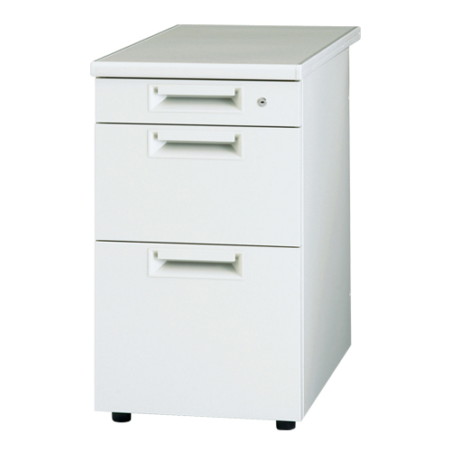 | スチールデスクシリーズ「JSデスク」脇机3段。 ●外形寸法(幅)[mm]:400 ●外形寸法(奥)[mm]:700 ●外形寸法(高)[mm]:700 ●質量[kg]:27.8 ●段数[段]:3 ●色:ホワイト ●天板厚[mm]:30 ●最大積載質量:天板=30kg ●最大積載質量2:引出上・中段=10kg、下段=20kg ●仕切板枚数:L1枚付 ●アジャスター:有 ●機能:オールロック機能 ●付属品:ペントレー1個付 ●材質:天板=メラミン樹脂化粧板(ポストフォーム加工)、エッジ=ABS、本体・引出=鋼板(樹脂焼付塗装) ●注意事項:ラッチ無 ●鍵枚数:2枚 ●引出内形寸法:上段=幅328×奥442×高75、中段=幅328×奥442×高219、下段=幅317×奥527×高295mm |