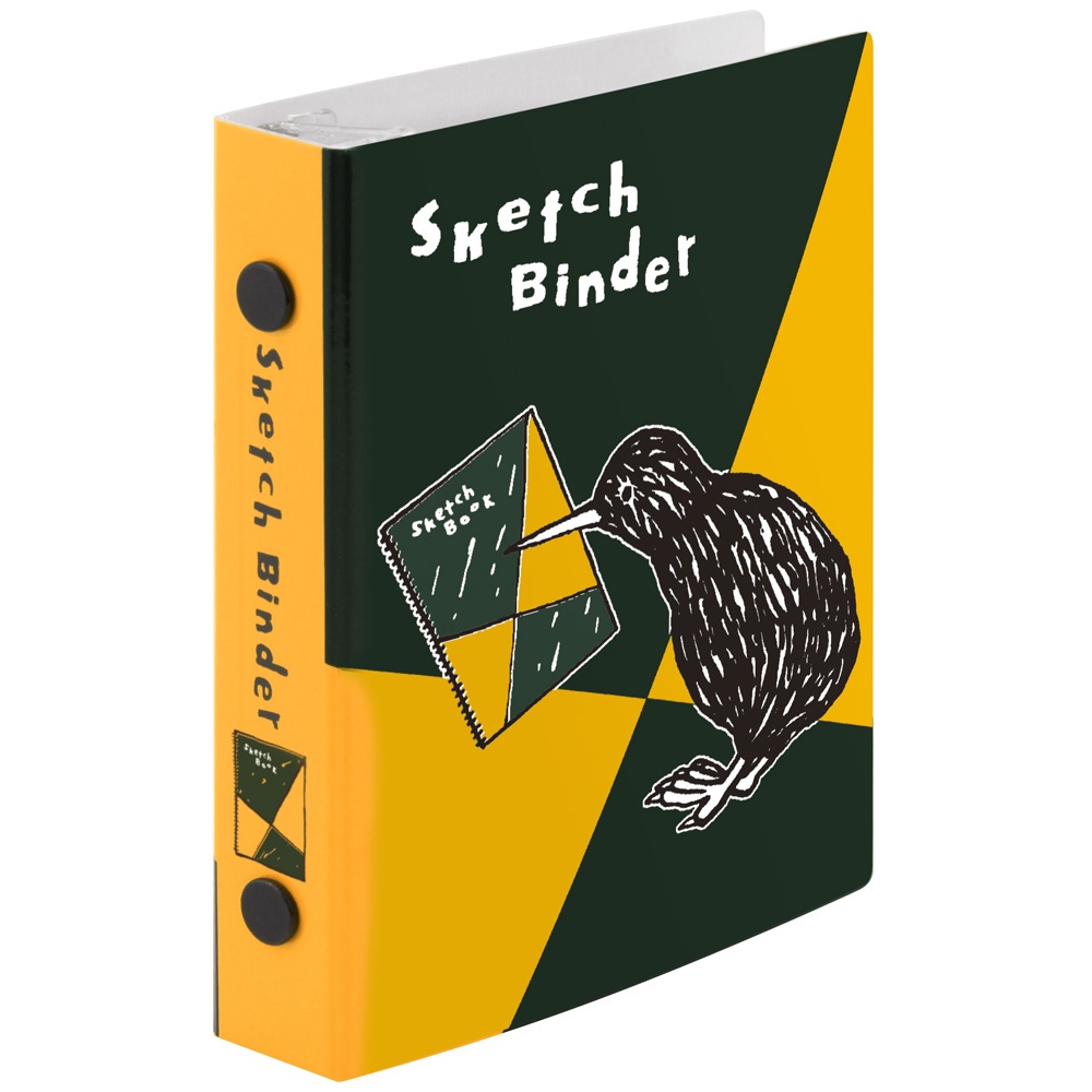 2024年スケッチブックの日限定品 「図案スケッチブック」柄の手のひらサイズの小さなバインダーです。 表紙にはあたたかい手描きのタッチが魅力の人気イラストレーター「浅野みどり」さんとコラボレーションをし、図案スケッチブックをくわえた動物のイラストがポイントになっています。