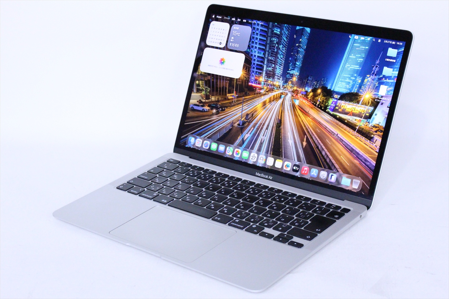【メーカー】Apple ノートパソコン 【型番/品名】MacBook Air Retina 13 2020 M1 A2337 【CPU】Apple M1 最大3.2 GHz 【メモリ】16GB 【ストレージ】SSD 256GB 【ディスプレイ】13.3インチ Retina 解像度 2560x1600 ※カテゴリ--13.0〜13.9インチ 【グラフィック】Apple M1 7コア 【光学ドライブ】-- 【Webカメラ】搭載 【充放電回数】104回 【キーボード】バックライトキーボード 【無線LAN】搭載 【その他装備】Bluetooth、USBTYPE-C(Thunderbolt3)x2 (※その他インターフェースは画像またはメーカーページ等でご確認ください) 【OS】Mac OS 26 Tahoe(タホ) 【寸法/質量】高さ:0.41〜1.61 cm 幅:30.41 cm 奥行き:21.24 cm 重量:1.29 kg(仕様・構成により変動する場合あり) 【付属品】ACアダプタ(社外品) 【メーカーページ】(スペック完全一致でない場合あり) https%3A%2F%2Fsupport.apple.com%2Fja-jp%2F111991