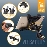 タブレット端末などをバイクや自転車に簡単ワンタッチで脱着できます。 ナビゲーションやその他の用途にお好きな角度に調整できるようになっています。