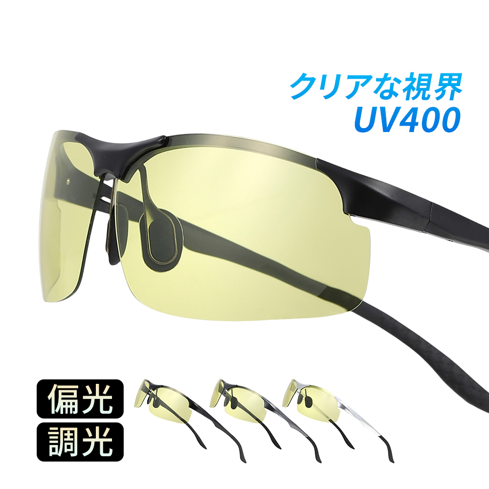 サングラス メンズ レディース 偏光 調光 スポーツ UVカット スポーツ用 UV400 紫外線 ランニング 夜間 運転 ユニセックス 紫外線対策 メガネ ドライブ